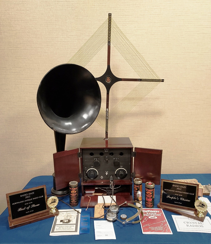 The Northland Antique Radio ClubRadio Daze 2022 ReportFriday afternoon, May 20, 2022, the large conference room at the Comfort Inn in Plymouth Minnesota was a very busy place. People were bringing in their radios to consign to the auction and the auction team was handling event registration, bidding numbers, and making sure everything for the auction was properly logged in, while others were helping place radios in the proper areas around the room. By 7:00 pm, the room was filled with bidders, the tables along the walls were filled with radios and other related items, plus another 30 radios donated to the club were in the overflow room. There were 92 registered bidders and 196 items to sell. Frank Rasada was the auctioneer and was assisted by 8 others who all helped as spotters and with moving and describing the items during the auction. Bill Fanum supplied and ran his fantastic sound system both for the auction and for the Saturday program, These people all did a great job making this the smooth-running auction that we all enjoy every year. Some of the nicer items in the auction were a 1923 Tuska 225 battery set, a Tri-City W-2 one-tube set, a Zenith T-600 Transoceanic with box, a Hammarlund HQ-145-A with speaker, a Philco 70 cathedral, an Army Morale radio R-100, a Crosley 158 cathedral, a Stromberg Carlson 240H, a Howe crystal set with box, a Magnavox AC2 amplifier, a Thompson horn speaker, a vintage radio repair sign, a General Electric A53 tombstone, a Soundcraftsman MA5002 amplifier, a Radiola 60 with 103 speaker, a Westinghouse Aeriola Sr., a Marantz 4230 receiver, a Philco 38 cathedral, a Philco 91 cathedral, an Atwater Kent H horn speaker, a Fisher 400 receiver, an Eico ST70 amp, a Philco 16B, a Philco 90 cathedral, a 1942 Zenith 5G2617, a General Electric F-63, a Westinghouse H-125, a Zenith chairside 5R236, a 1932 Philco 112X, a Detrola Super PeeWee, an Atwater Kent 944, a Crosley 66YC, a Radiola 17 with speaker, a Wards Airline WG24, a Crosley 10-135 dashboard radio, a Crosley Super Regen battery set with speaker, a Crosley Fiver, and an Altec 755C speaker.